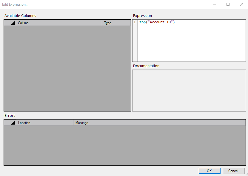 • View the Available Columns in this data set. Double-click a column to include it in your expression. (The available columns display only in the Spectre Build Script editor.)