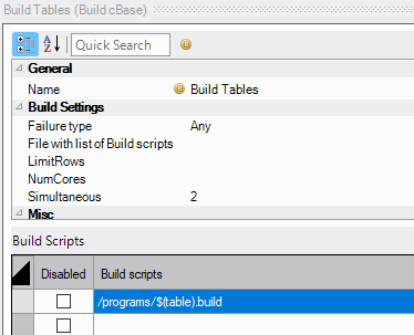 Parameters derived from a parameter file are formatted with a header line and parameter lines. As such, a file formatted with table on the first line will have table be the name of the parameter that nodes within the loop can use. In the following example, a parameter file named Table_List.txt contains three names for Spectre build files (missing the .build extension).